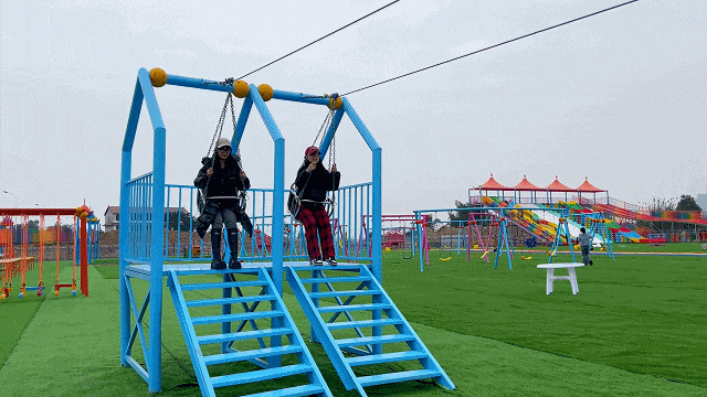亲子互动区:双龙秋千、樱花树秋千、4人月亮秋千、坑爹过山车(需家长骑行助力);